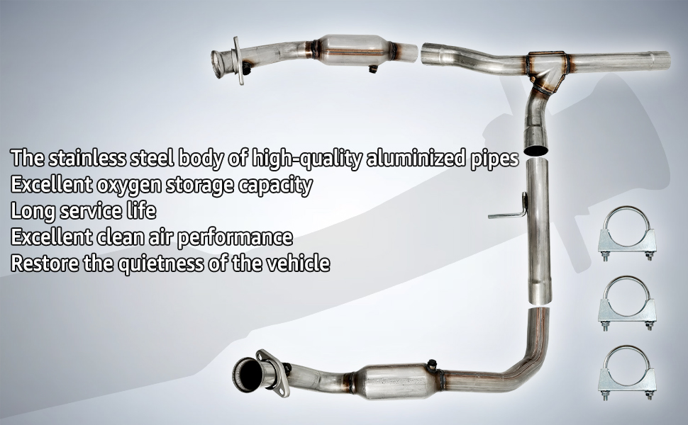 The catalytic converter's body made from stainless steel has superior quality of oxidation and corrosion resistance, and anti-leakage, anti-deformation, anti-clogging, anti-rust, anti-wear and anti-melt. It contains precious metals to reduce tailpipe emissions.